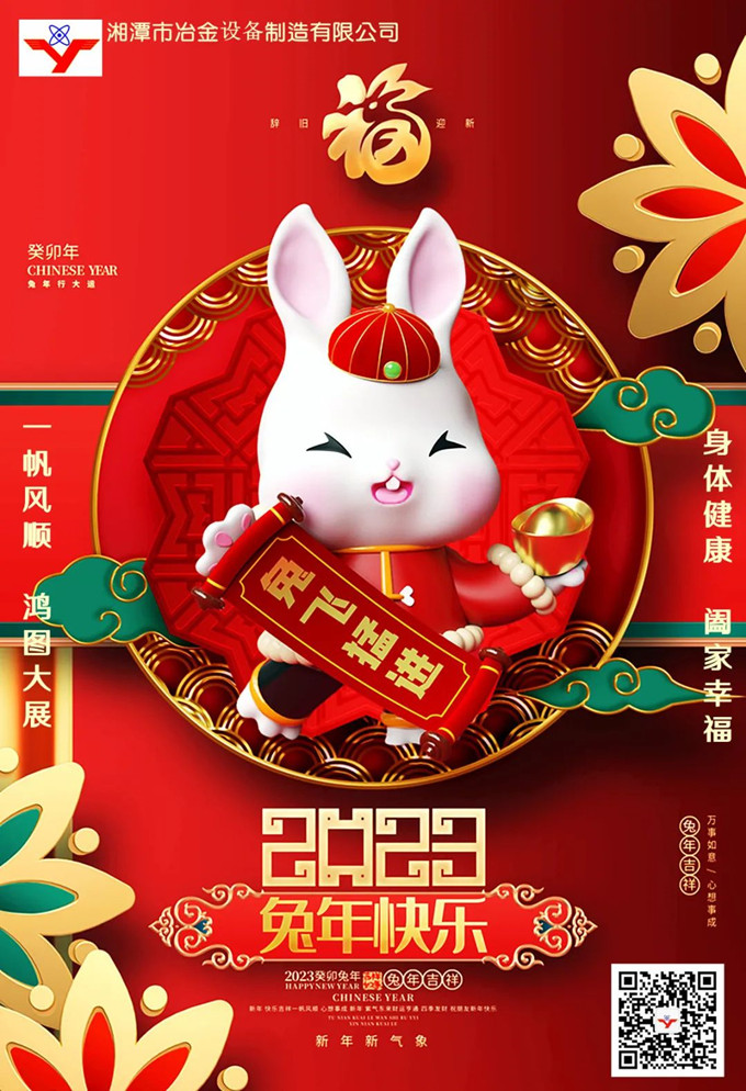值此2023新年元旦來臨之際,衷心祝愿全體湘冶家人在往后的日子里,在健康快樂中建功立業(yè),與公司一起度過激情燃燒的歲月,一道走向成功!祝所有朋友及家人們:新年快樂!萬事勝意!祝所有朋友及家人們:身體健康、工作順利、事業(yè)進(jìn)步、闔家幸福!